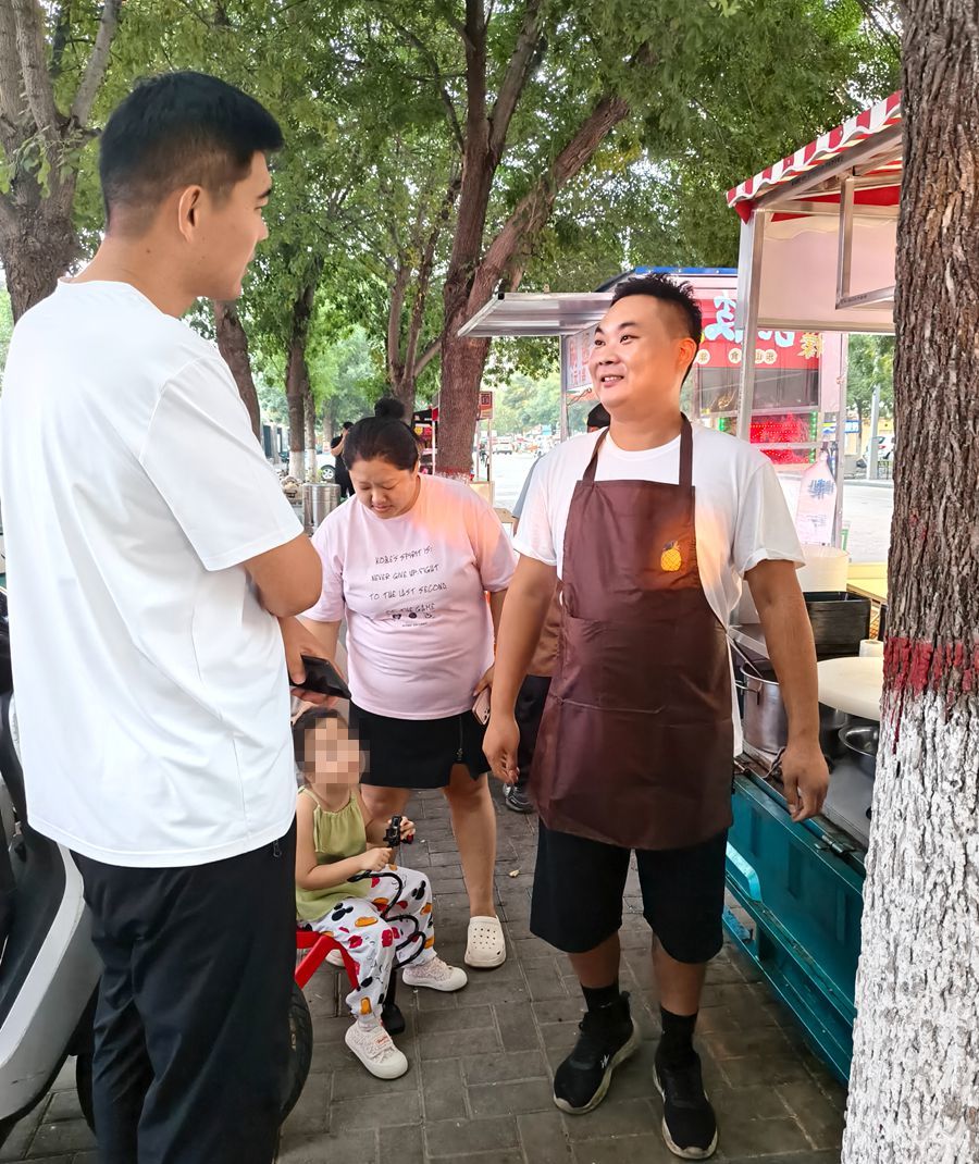初见李明政,是在久和夜市的路灯下。1.88米的他微微弯腰,举着手机为郭敬的熟食摊儿拍视频,镜头里满是对这个异乡困境家庭的关切这就是街道居民口中的“大个子书记”,一位带着军人底色的基层党员。