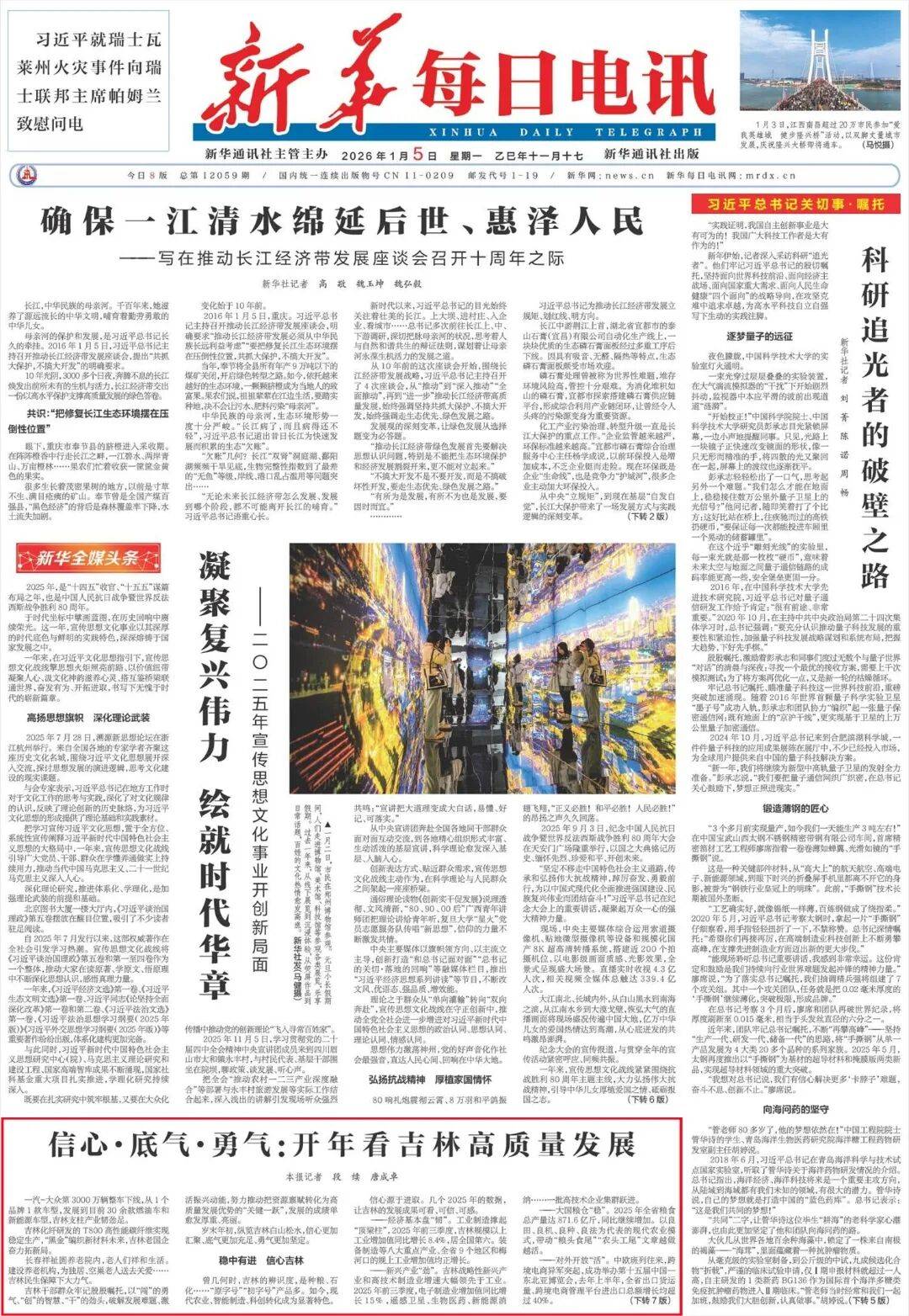 新华每日电讯一版推出《信心·底气·勇气:开年看吉林高质量发展》,从稳中有进、储能蓄势、开拓进取等三个方面,报道吉林干部群众牢记殷殷嘱托,以“闯”的勇气、“创”的智慧、“干”的劲头,破解发展难题、激活振兴动能,努力推动把资源禀赋转化为高质量发展优势的“关键一跃”,发展的成绩单愈发厚重、亮丽。岁末年初,纵览吉林白山松水,信心更加汇聚、底气更加充足、勇气更加坚定。
