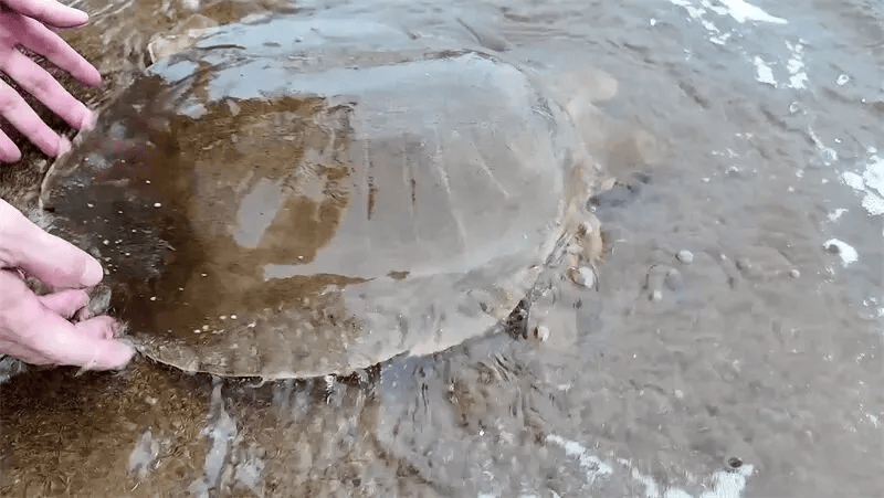 韩江潮州市区段首次发现国家一级保护动物韩江鼋。(潮州日报全媒体记者 陈莹 摄)