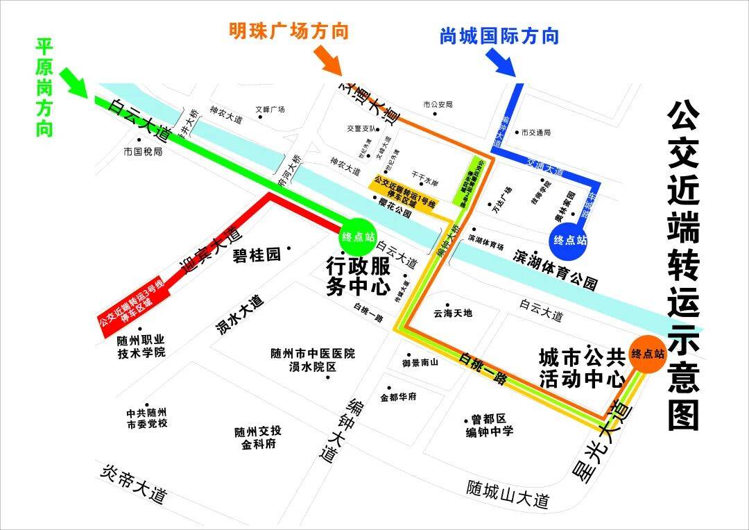 回职业技术学院方向:在行政服务中心旁涢水大道上车,走白云大道、迎宾大道返回。