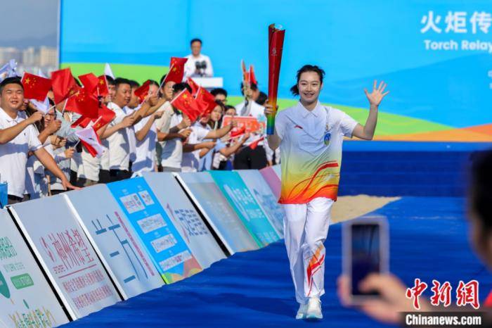2026年3月30日,以“传递友谊 相约三亚”为主题的第六届亚洲沙滩运动会火炬传递活动在海南三亚举行,中国跳水运动员昌雅妮担任01棒火炬手。 中新社记者 骆云飞 摄
